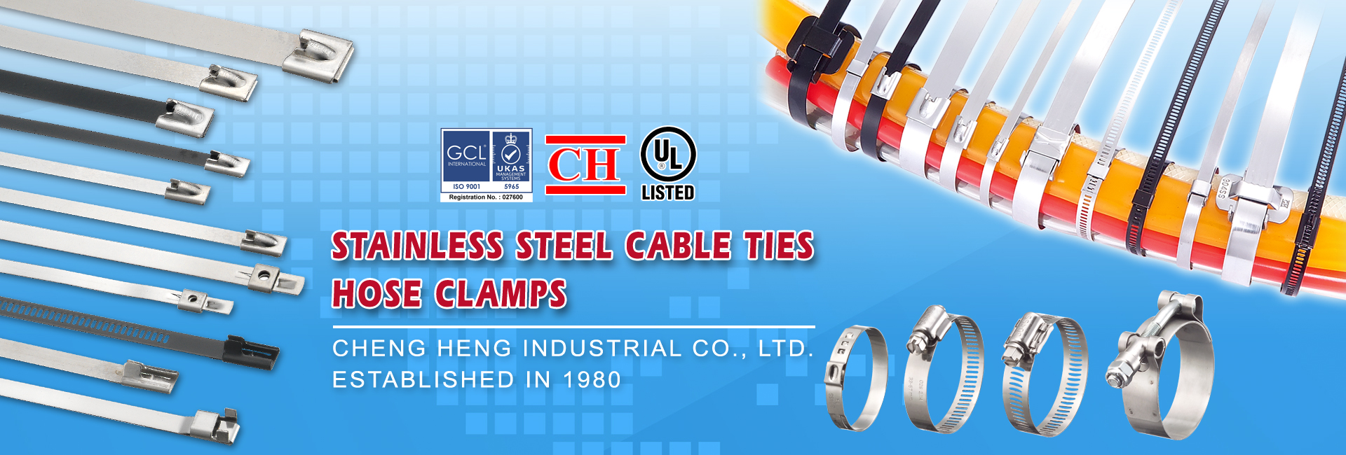Cheng Heng have devoted production Stainless steel hose clamp, stainless steel cable tie over 10 years experiences. Including: worm drive hose clamp, ear clamp, Heavy duty clamp, C.V. boot hose clamp, T-Bolt clamp, 304SS hose clip, stainless steel hose clip. SS stainless steel cable ties; SS cable ties with Nylon coated, pipe clip, stainless steel strapping, banding with buckle, Spring Band Constant Tension Hose Clamps, quick release hose clamp, stainless steel band, band clamp, Multi-lock cable tie, ladder SS cable ties, reusable SS cable ties.